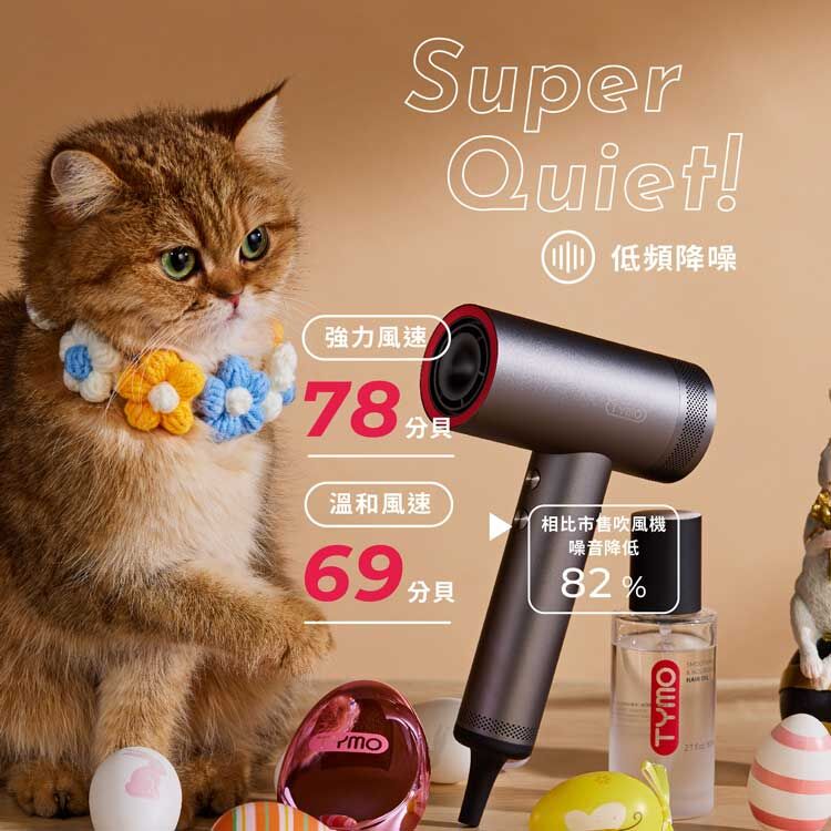5. 強力風速78分貝,溫和風速69分貝,相比市售吹風機噪音降低 82 %