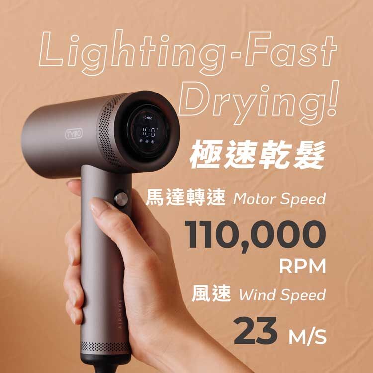 1. 11萬轉高速馬達,每秒23公尺集中大風量、特殊航太科技扇葉設計;穩定速乾,吹髮時間減半