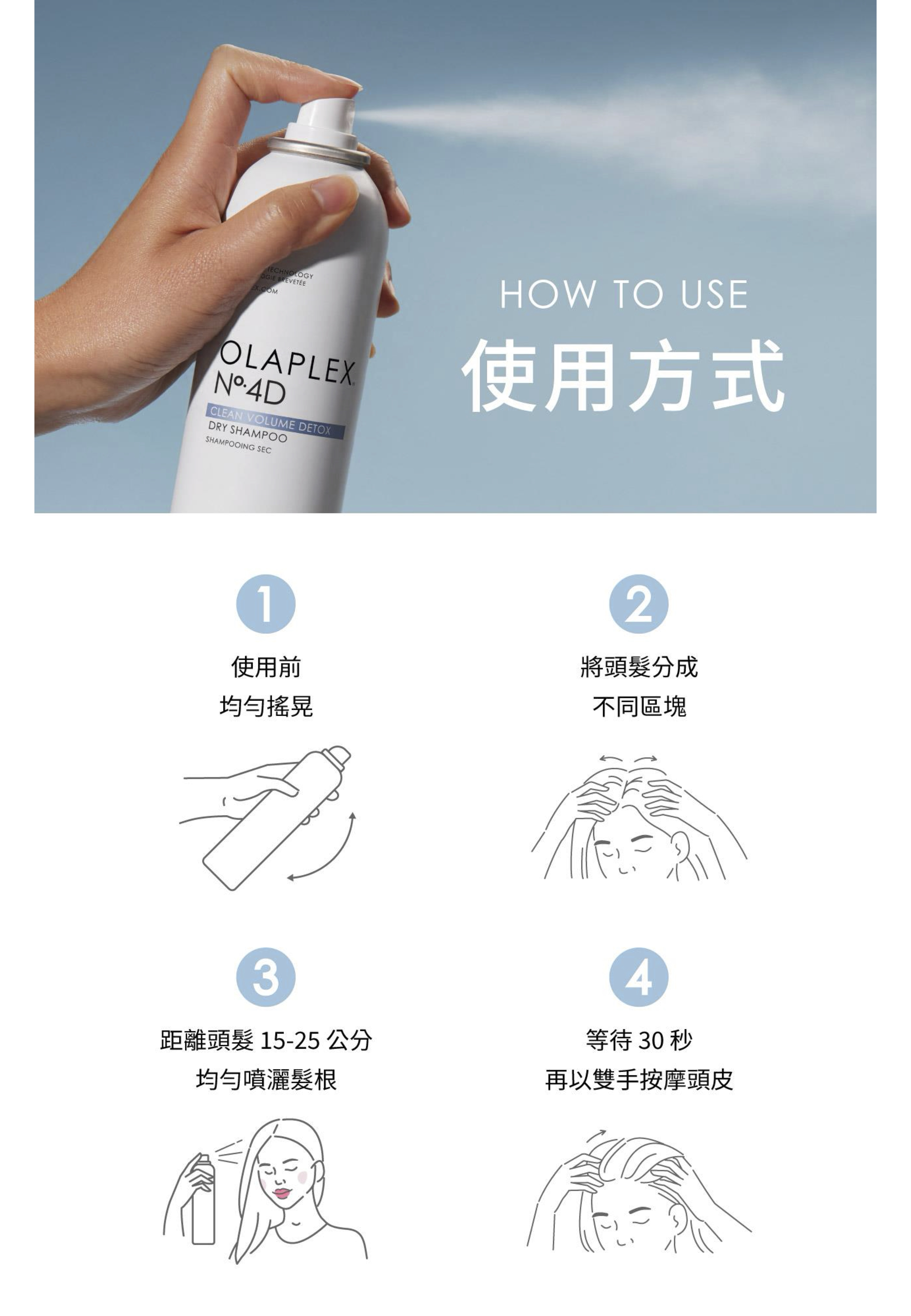 ・使用前均勻搖晃,離3-5公分噴於髮根,等待30秒搓揉頭皮即可。