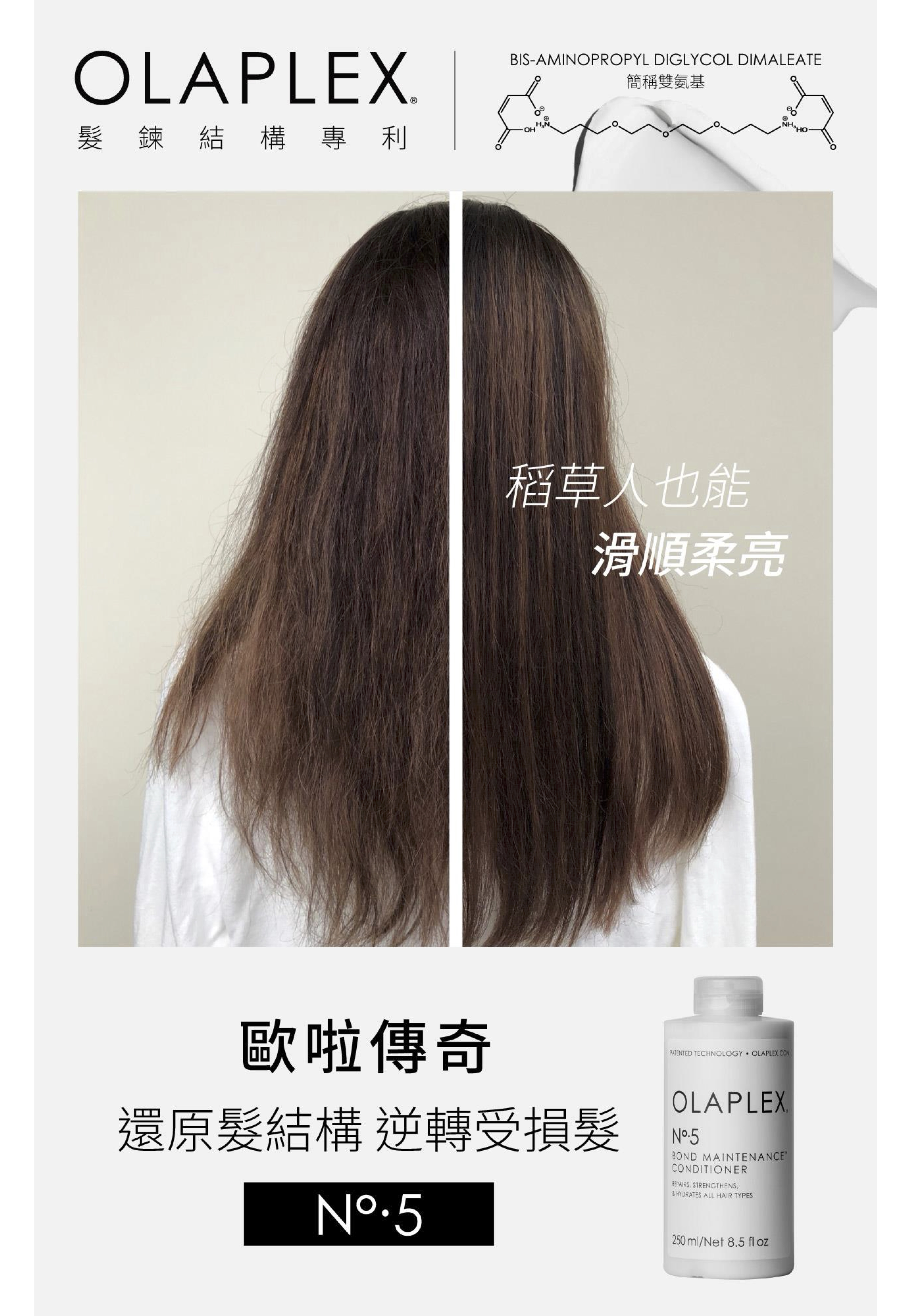 ・建議搭配歐啦4號 溫和水潤洗髮乳一起使用效果更佳;歐啦4號濕髮塗抹清潔後沖洗,接續使用歐啦5號護髮,稍微按摩按壓,停留3分鐘後清水沖洗。