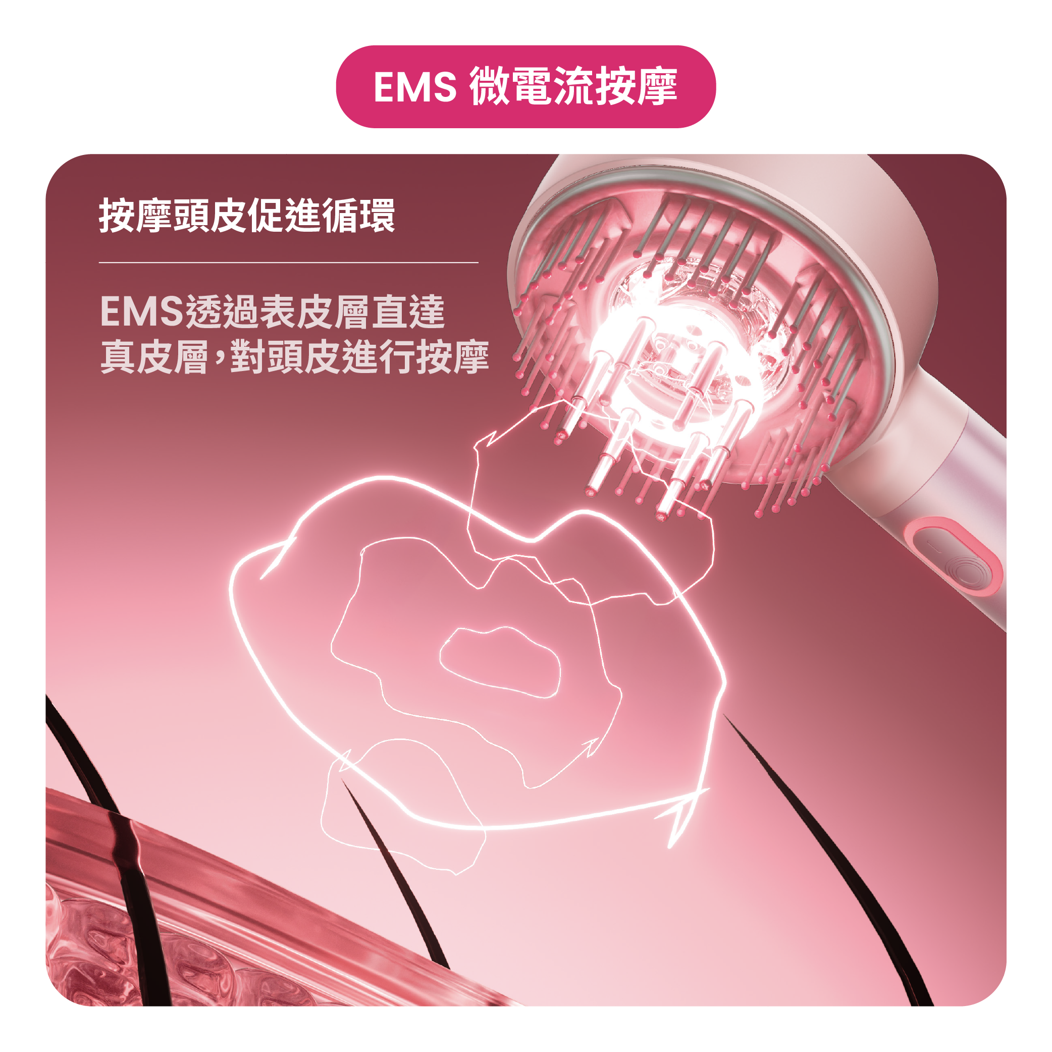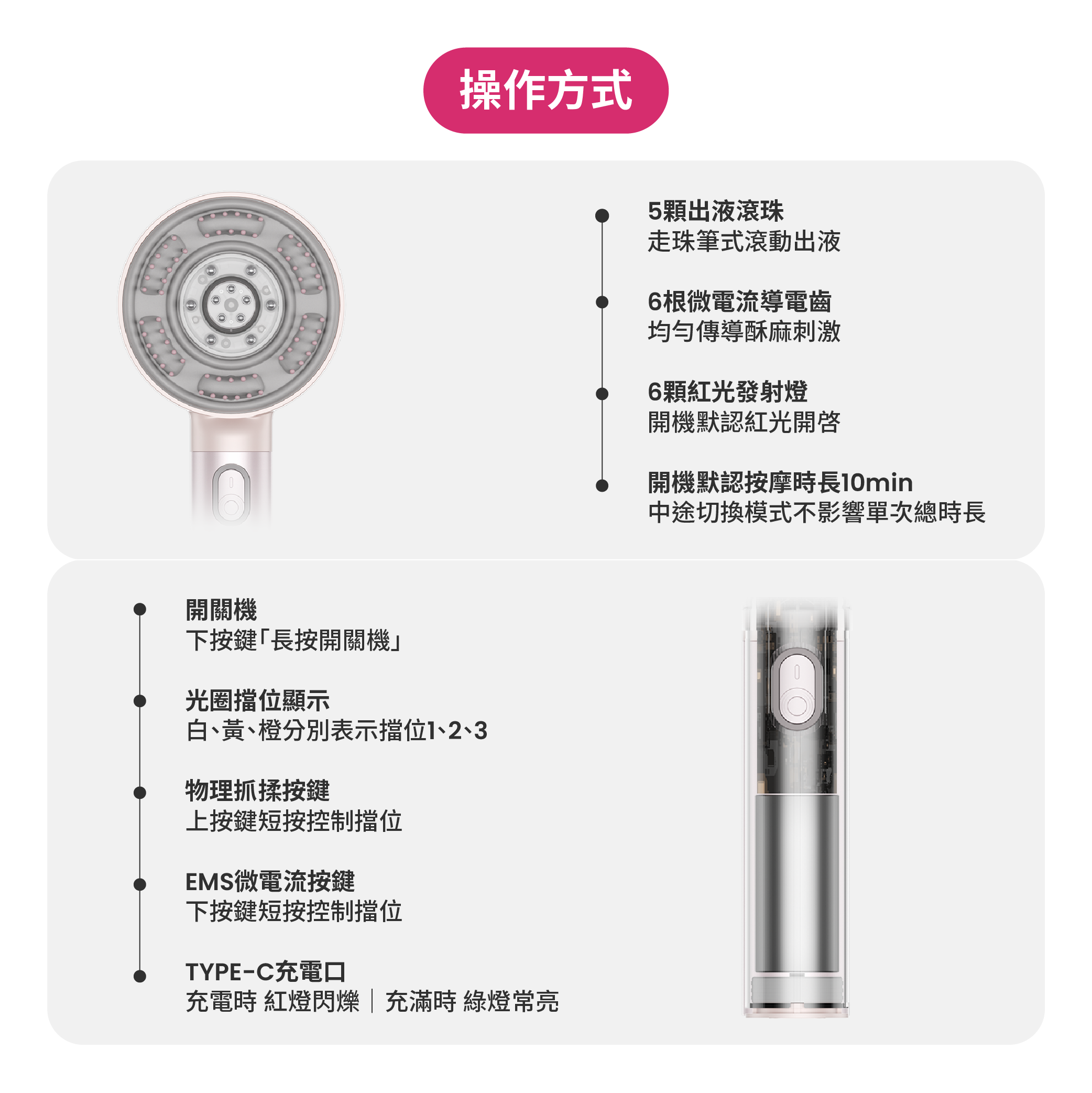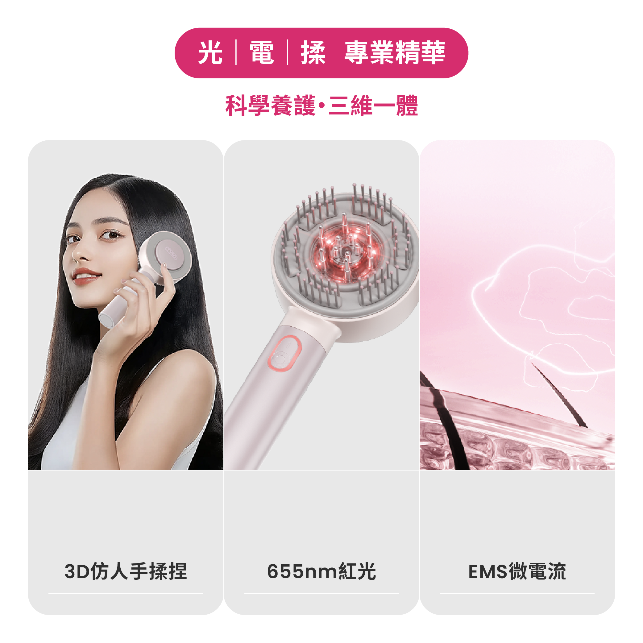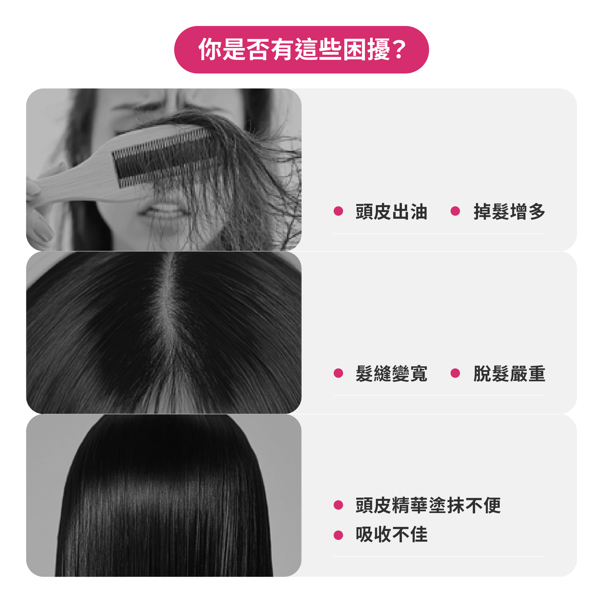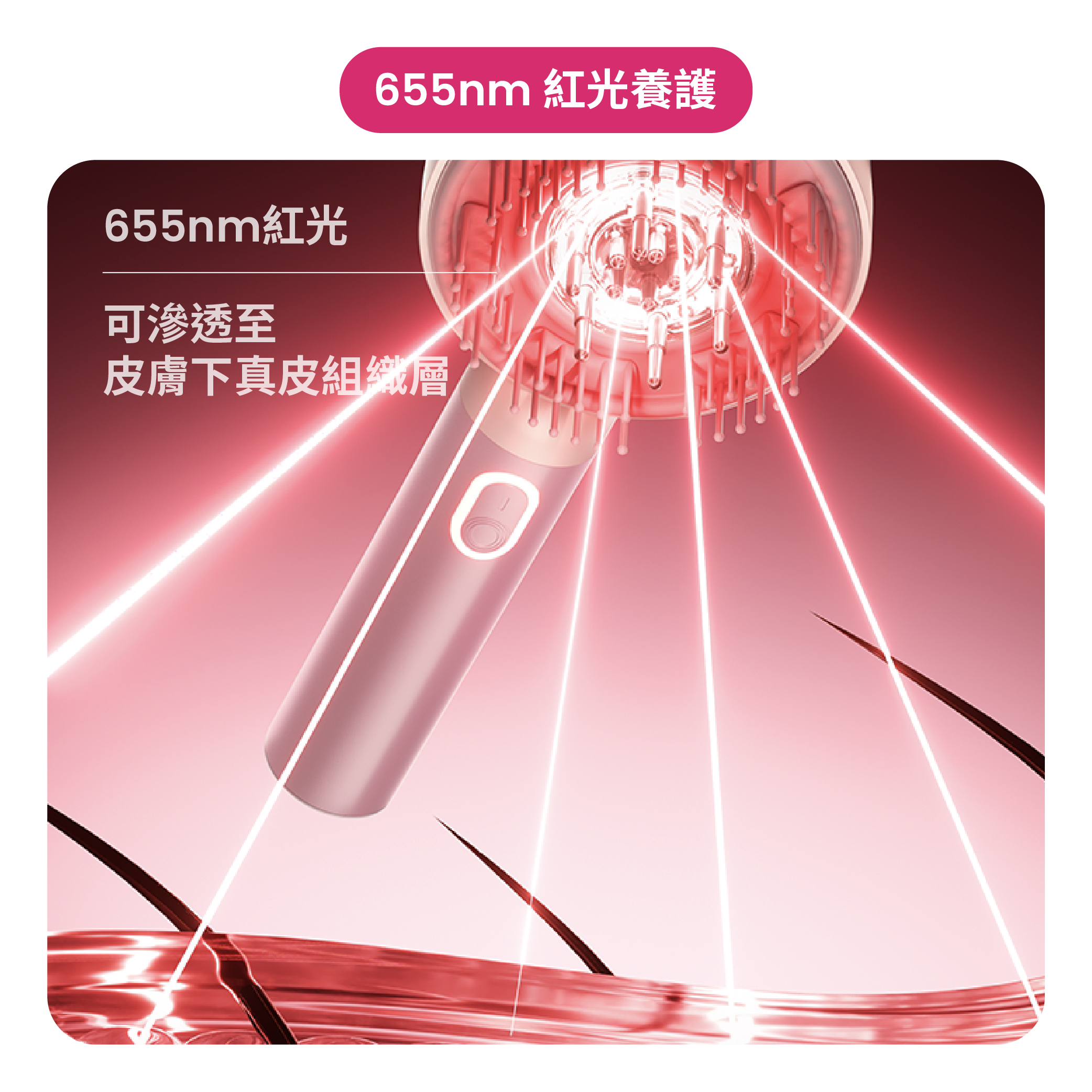 使用紅光按摩梳後,頭皮微循環提升,有助於精華液、養護品更深入滲透,達到加乘護理效果。