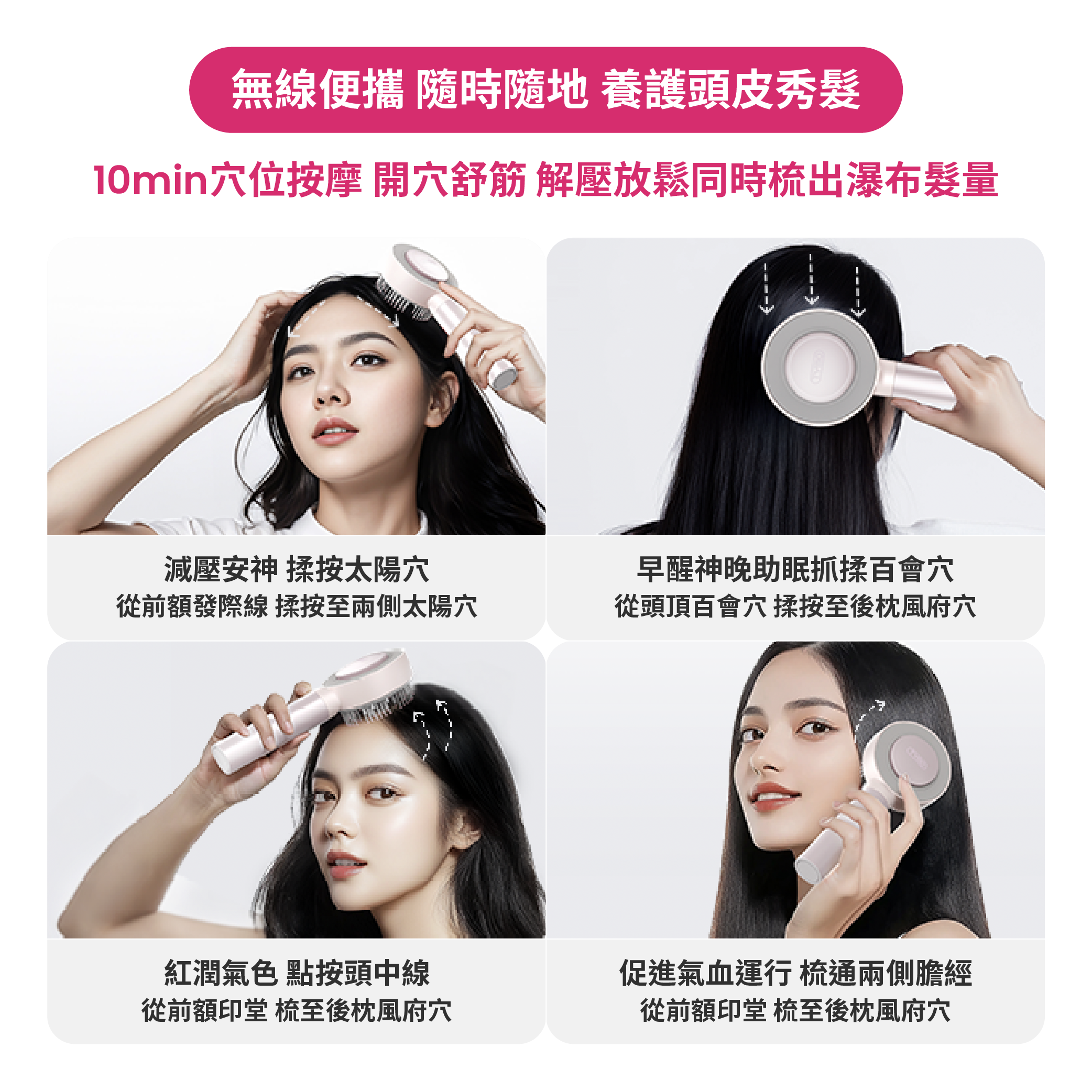 搭配按摩梳的輕柔按摩,有效釋放日常累積的壓力與緊繃感,讓心情和頭皮一同放鬆。